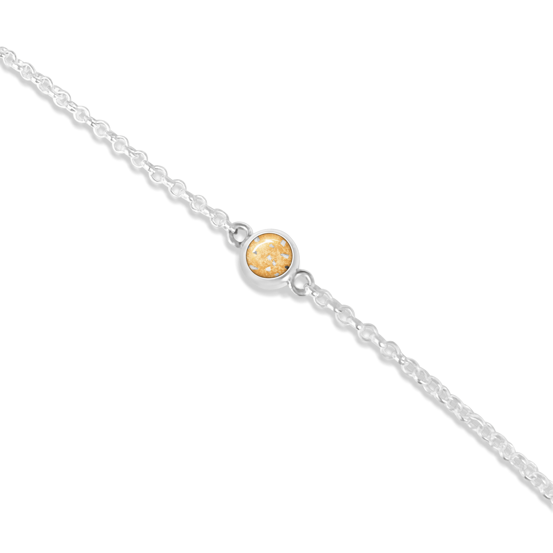 Regular price £175.00A lovely memorial bracelet with timeless round design. This bracelet can be created with ashes, hair, fur or horsehair and has a rolo chain fastening, approximately 6 inches with an adjustable extender up to 7 inch.