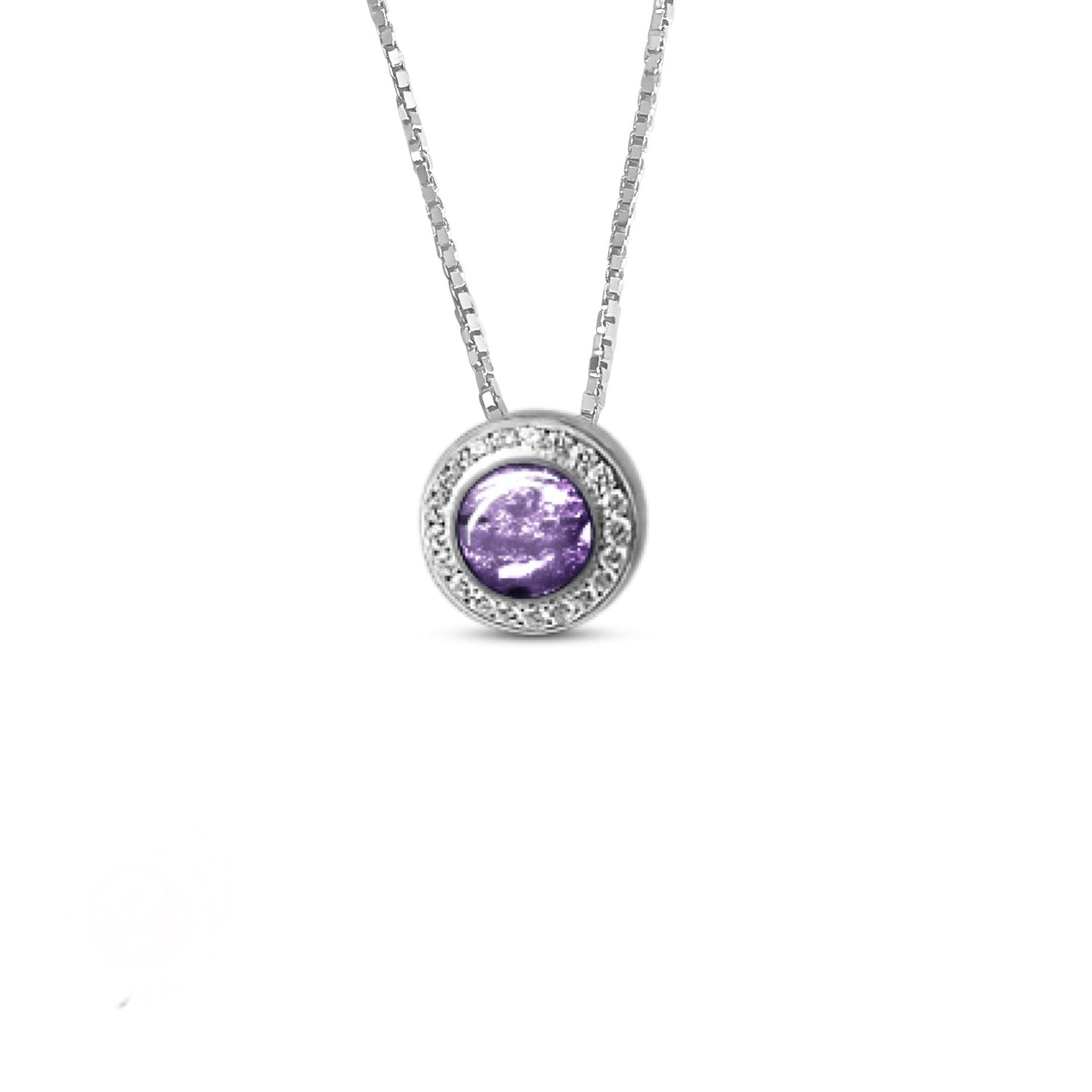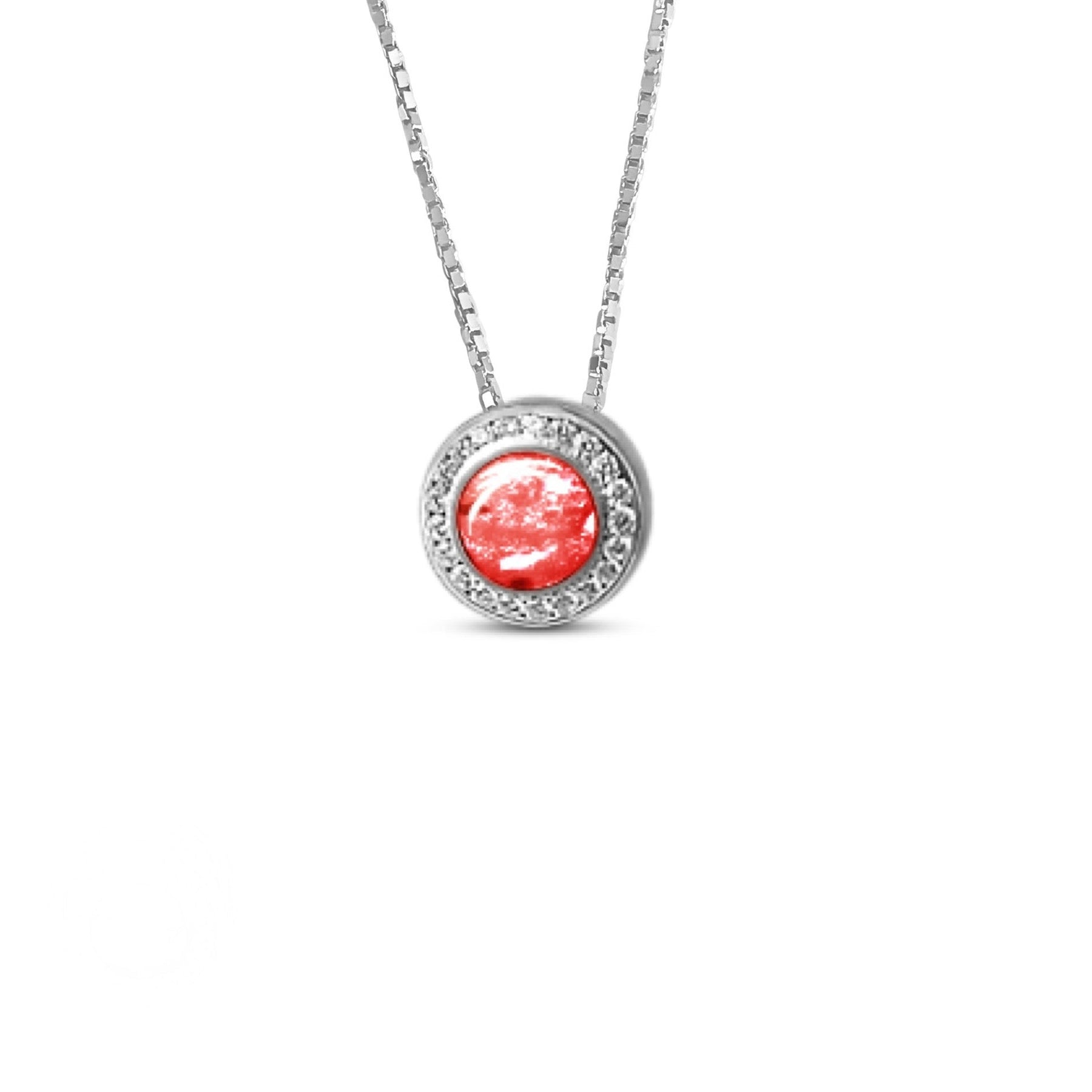 Regular price £230.00A stunning timeless round memorial necklace adorned with sparkling crystals. Sparkling crystals surround the centre setting where your loved ones ashes and hair or pet ashes, fur and horsehair will be placed. A choice of coloured settings are available. We can also create custom colours.