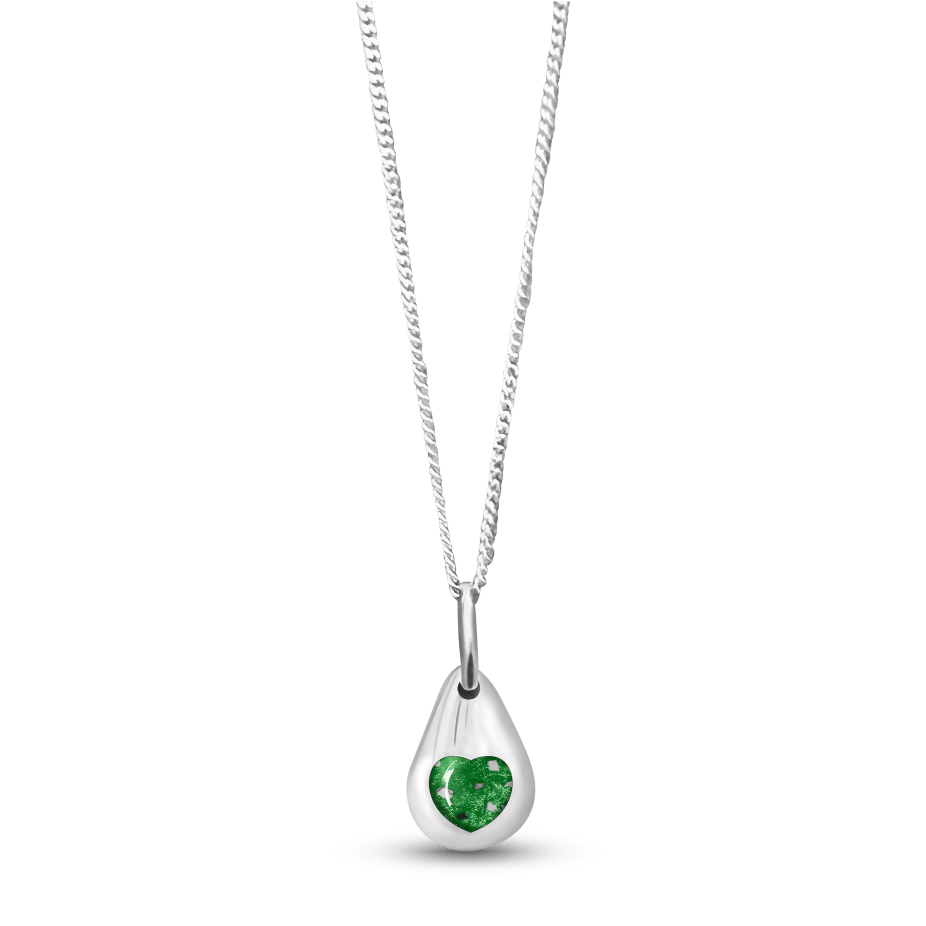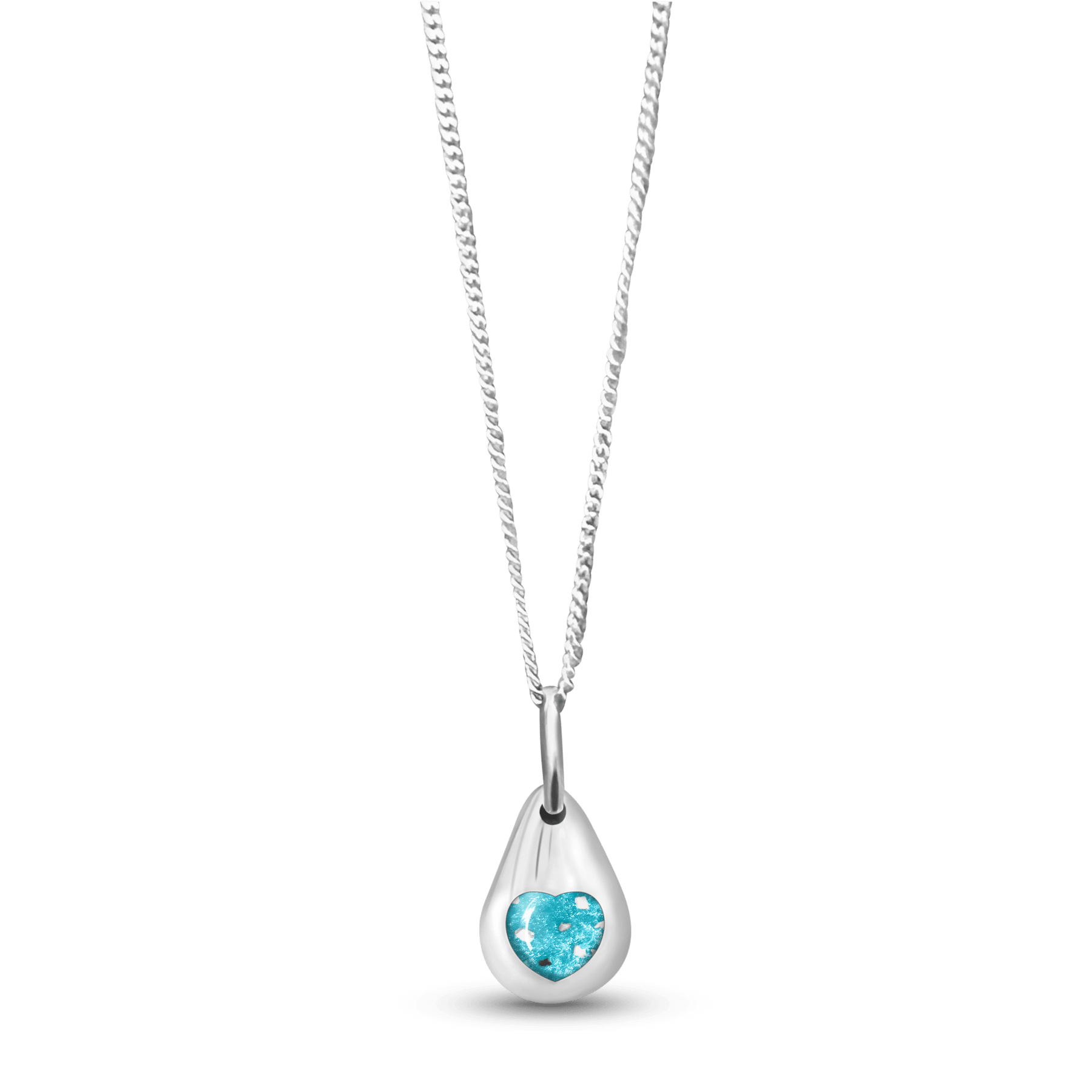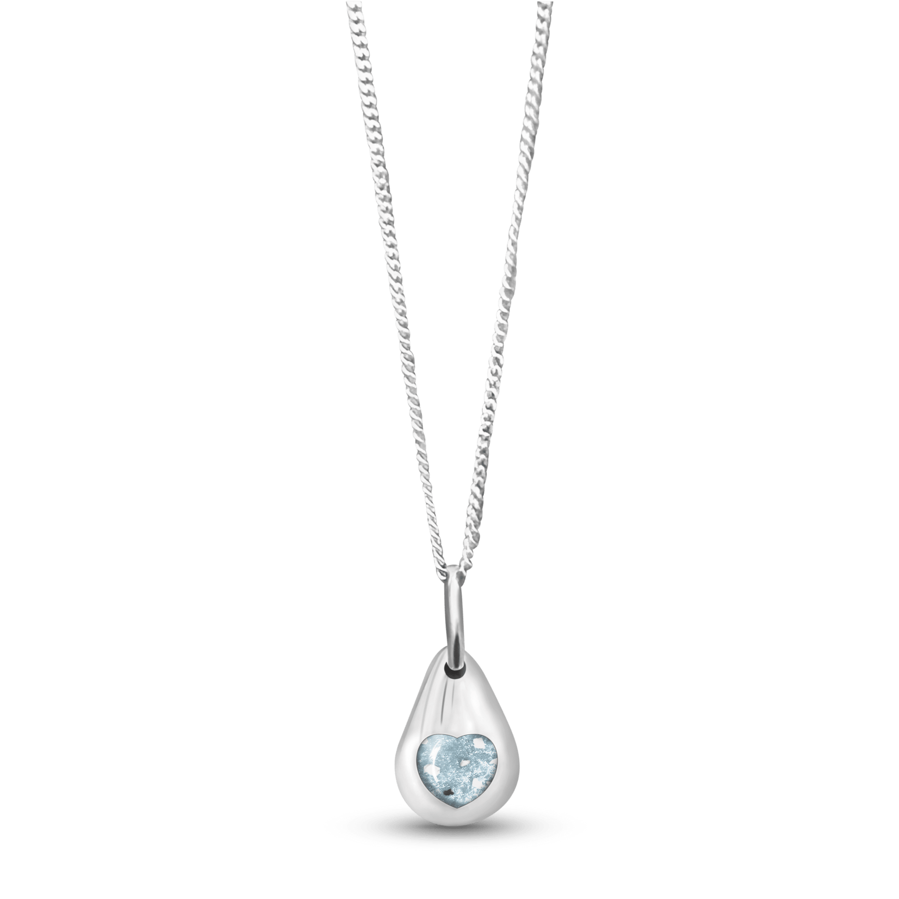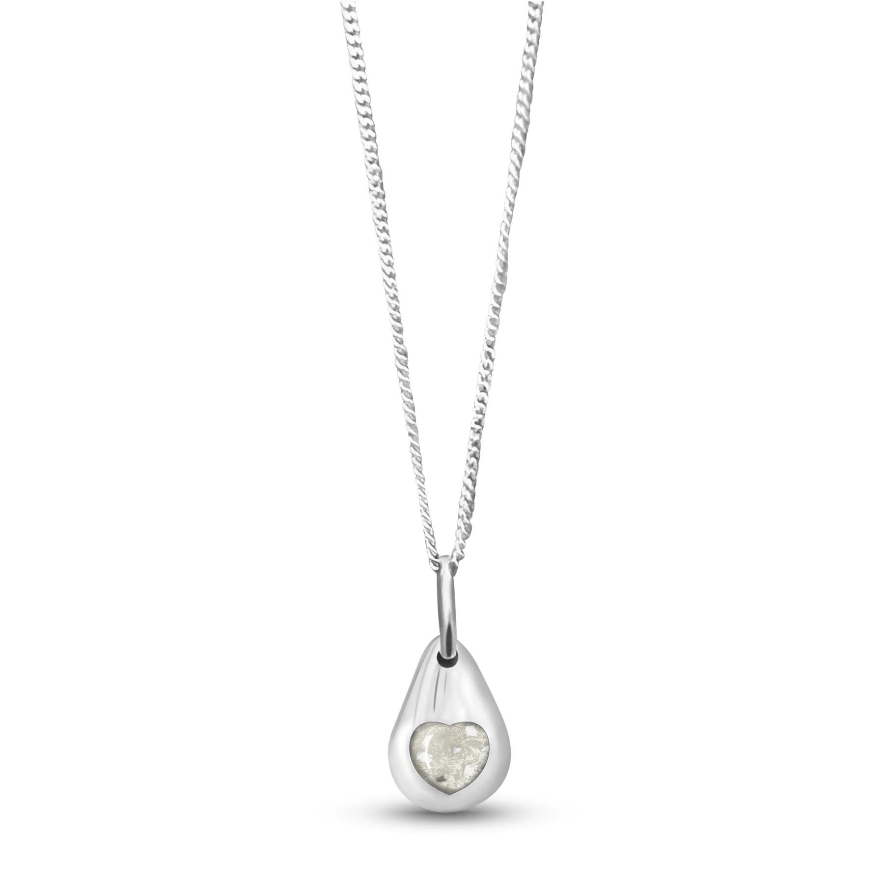 Regular price £185.00A solid and beautiful teardrop memorial necklace with centre heart setting where we will place ashes, hair, fur or horsehair of your loved one or beloved pet.