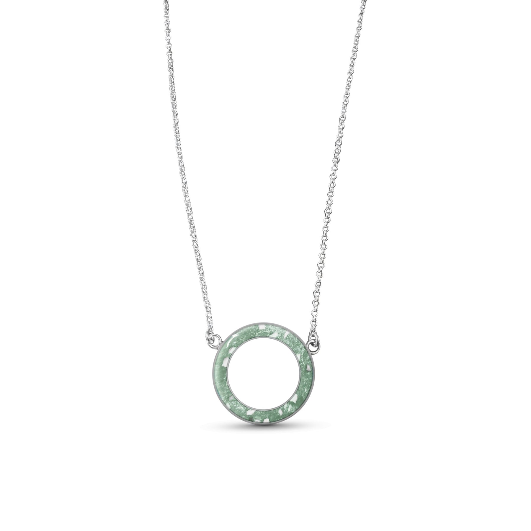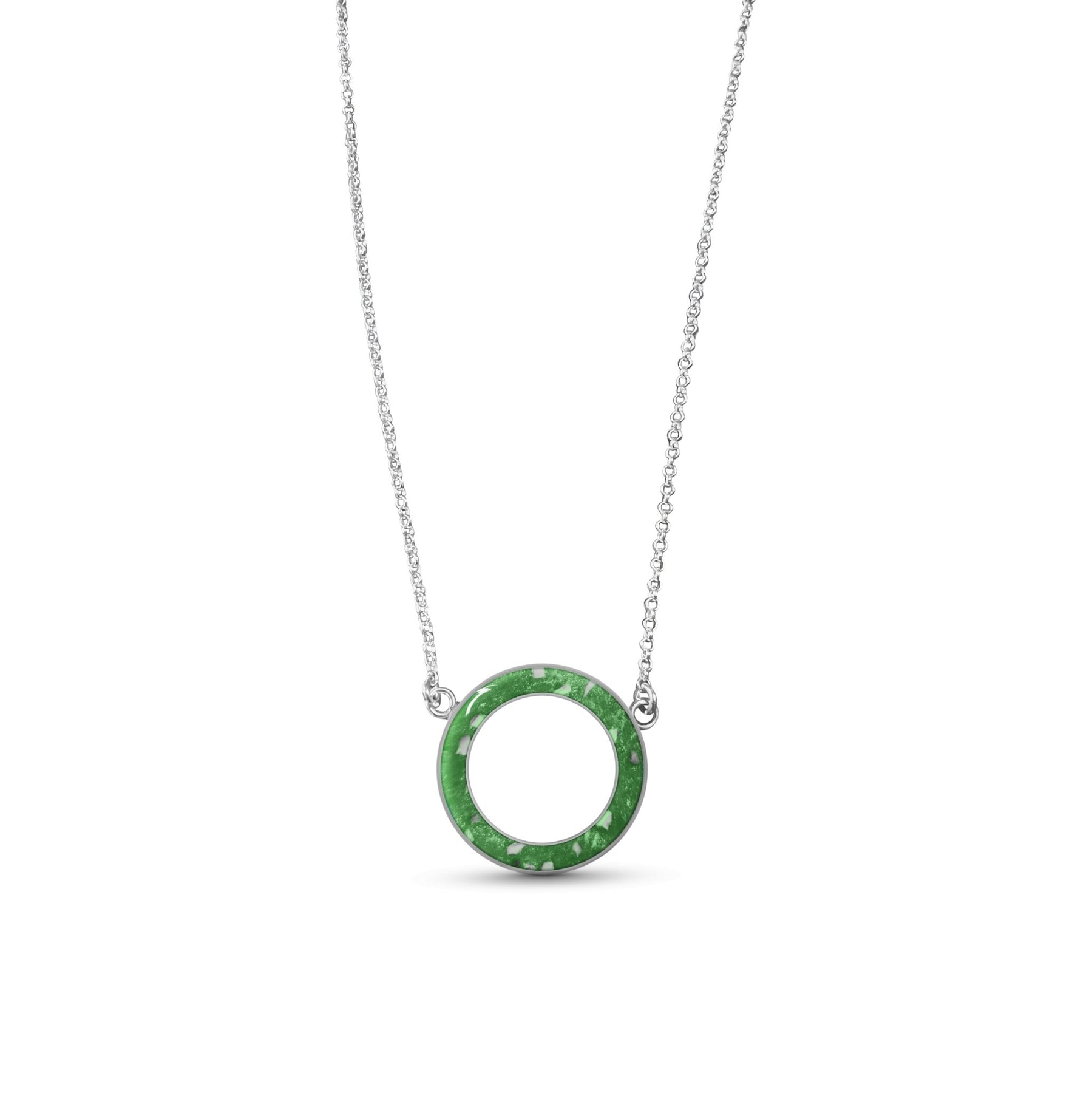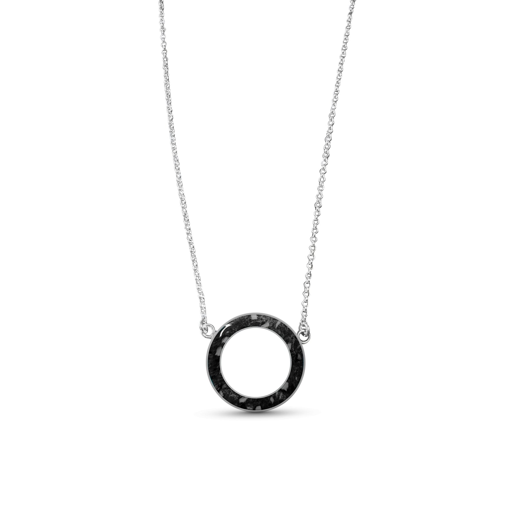 Circle of love memorial ashes necklace.  A beautiful necklace with one single circle design where we will place the ashes, hair or fur of a loved one or pet. We can make this necklace with one or multiple inclusions of a loved one or pet inside.