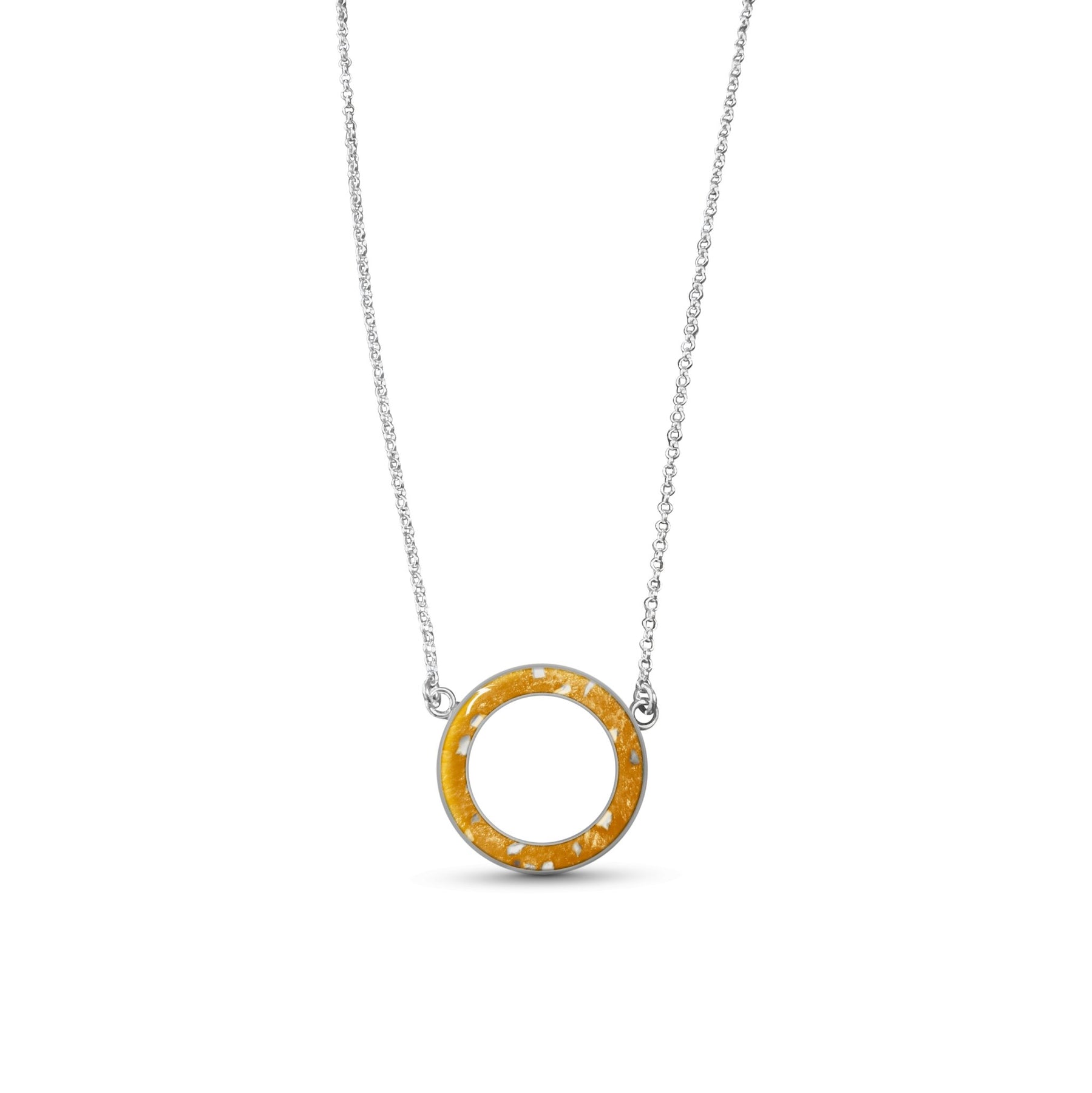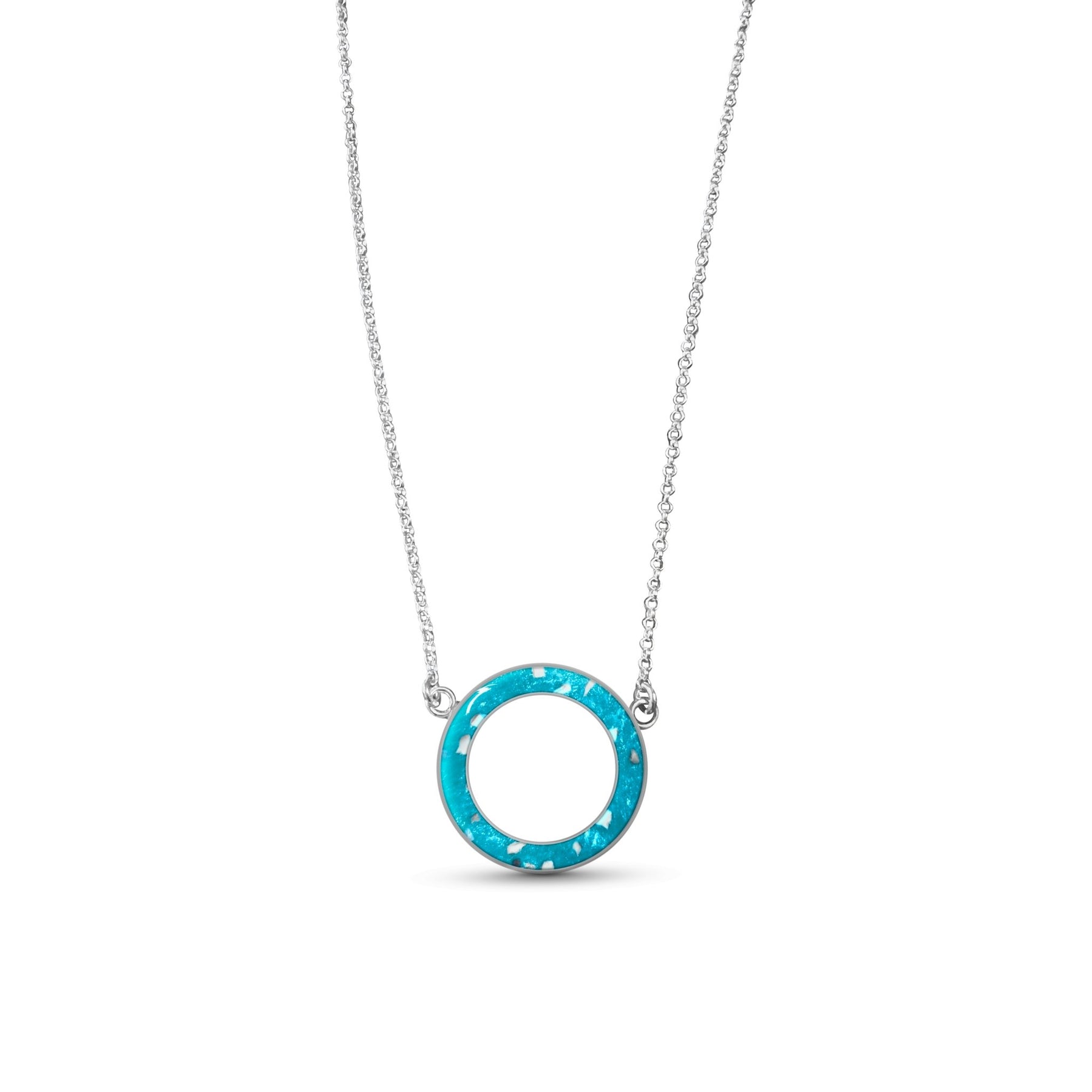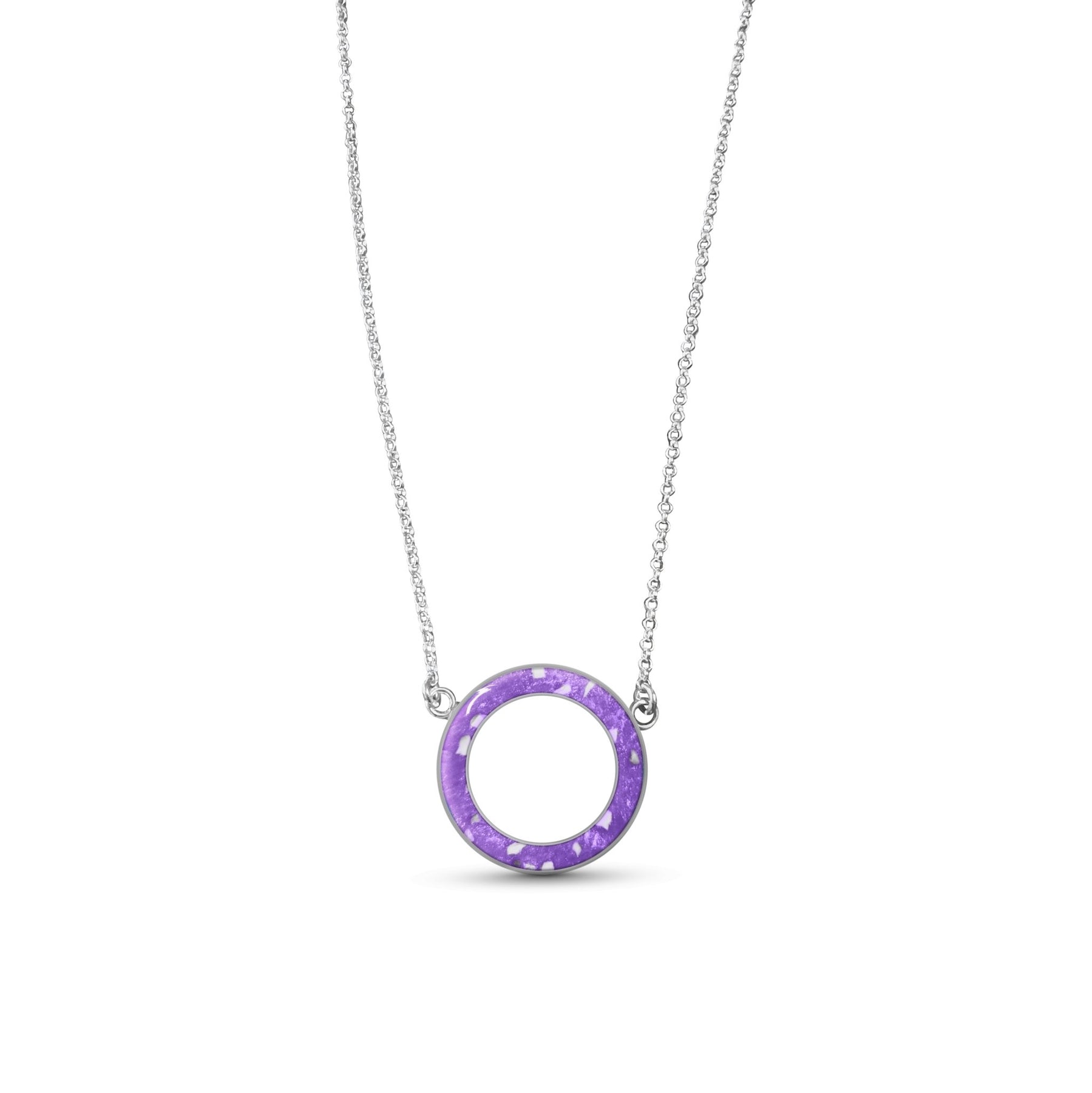 Circle of love memorial ashes necklace.  A beautiful necklace with one single circle design where we will place the ashes, hair or fur of a loved one or pet. We can make this necklace with one or multiple inclusions of a loved one or pet inside.
