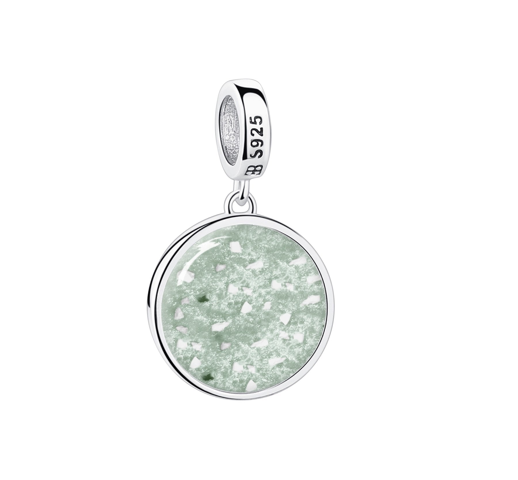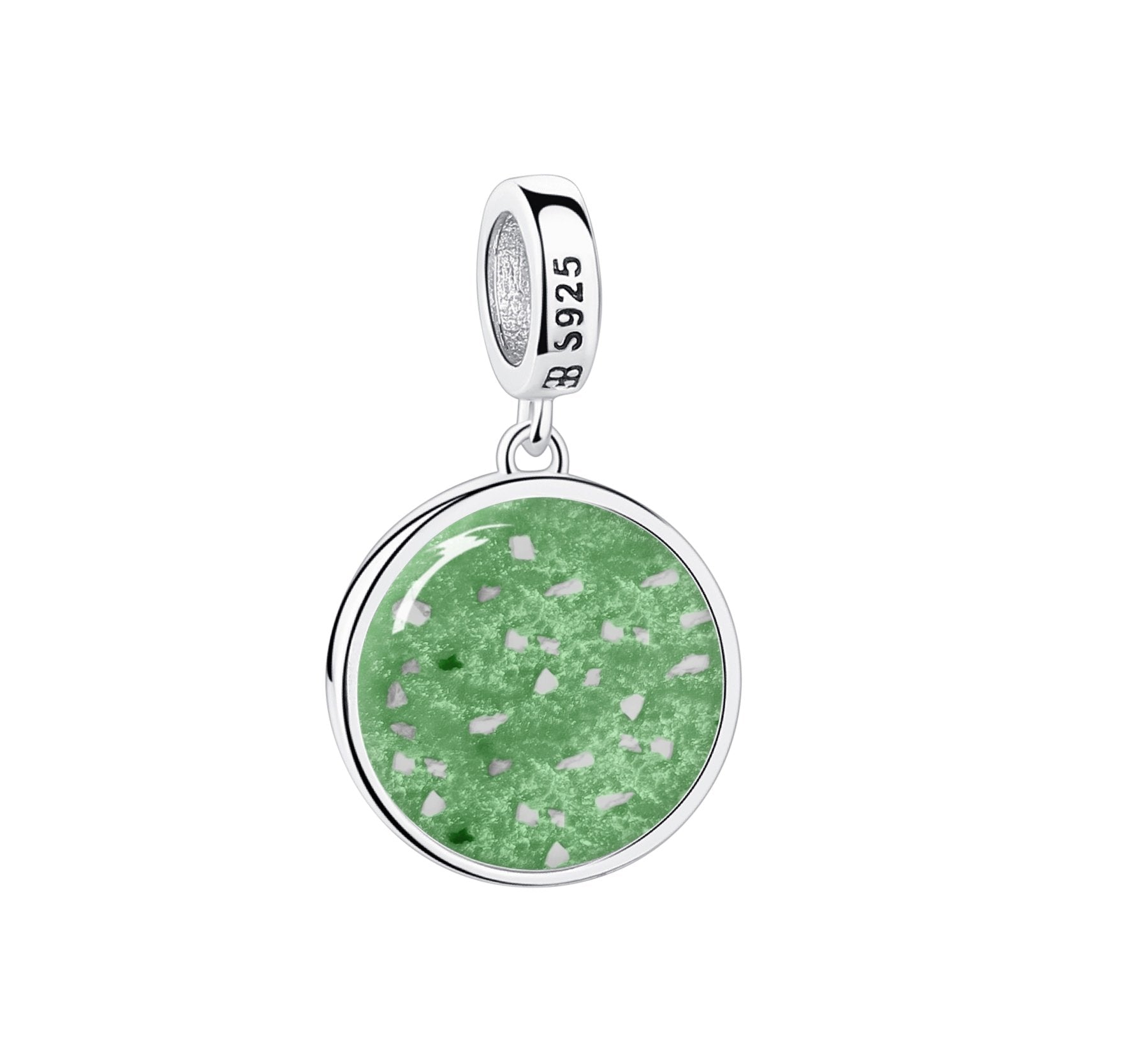 - Shape: Round dangle charm with engravings and crystals