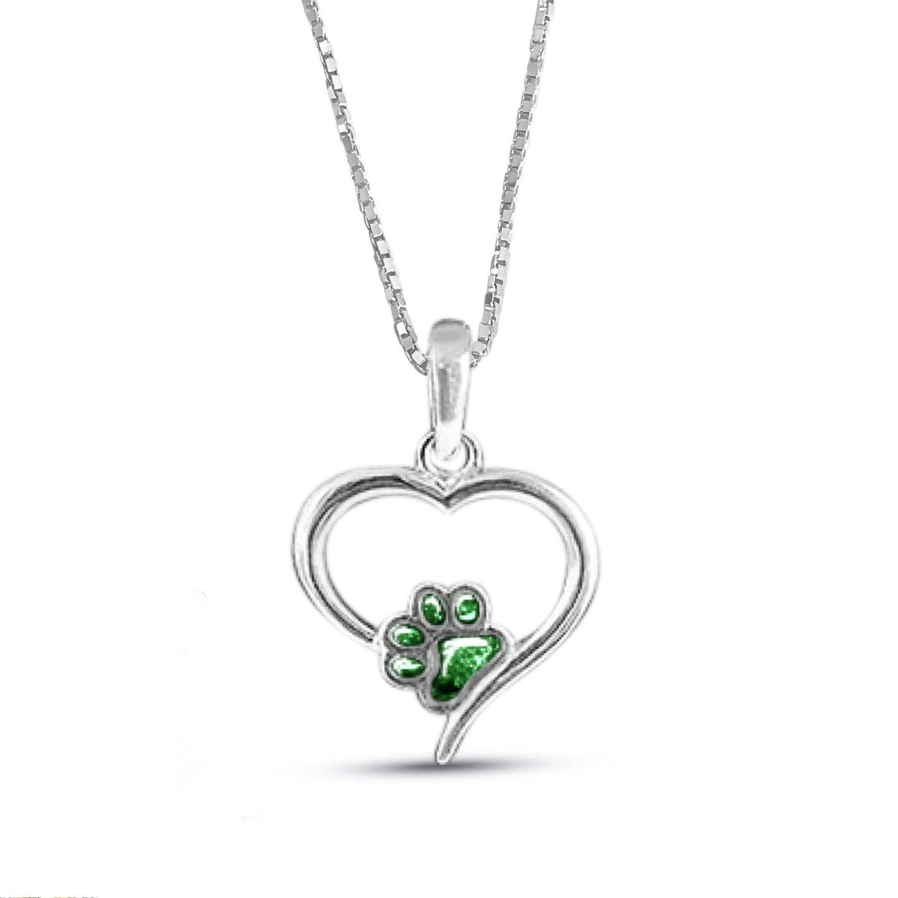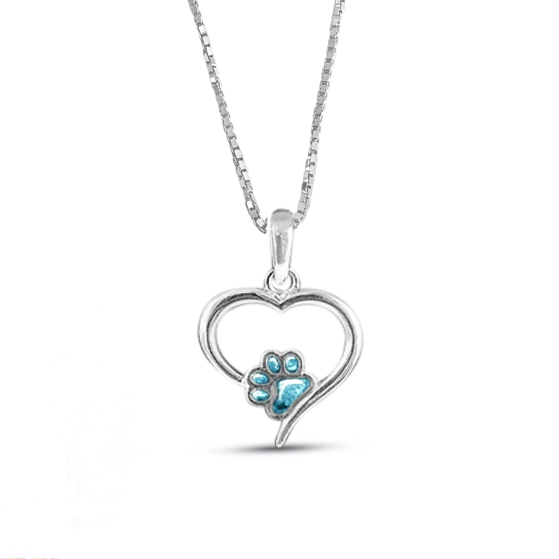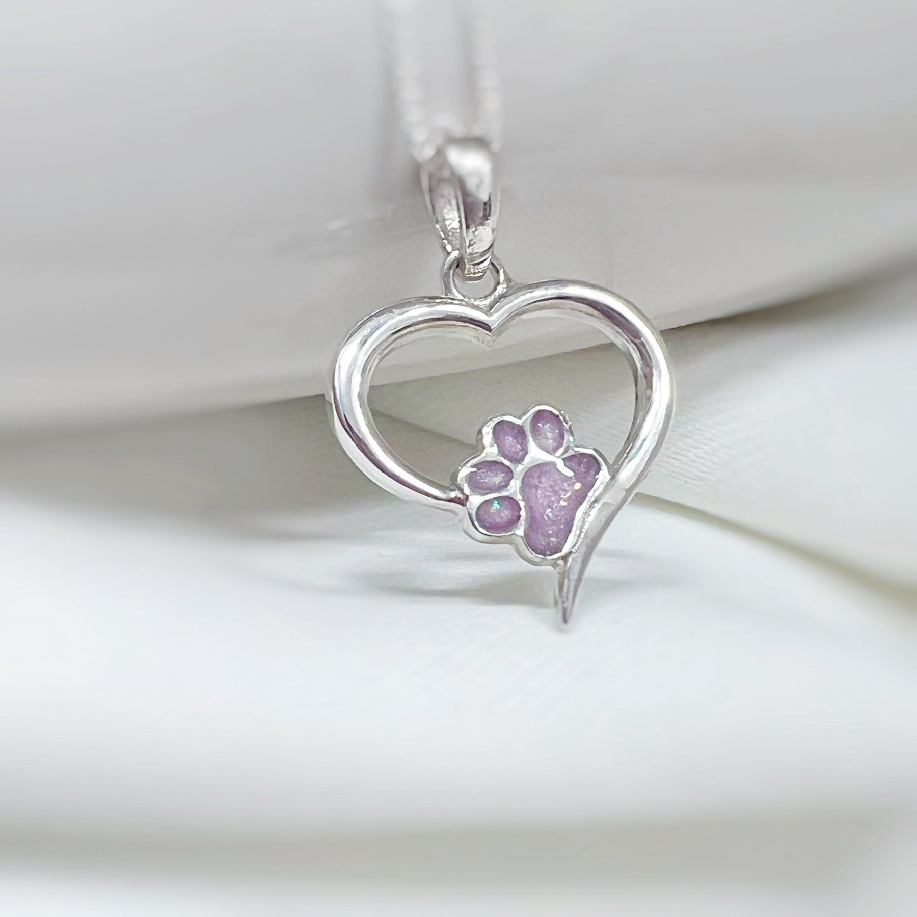 Regular price £179.00A beautiful heart memorial necklace encompassing a dainty pet paw centre setting where we will place ashes or fur. This pretty memorial pendant measures approximately 21x21mm (excluding bail) and is a lovely sentiment in remembrance of your beloved pet.