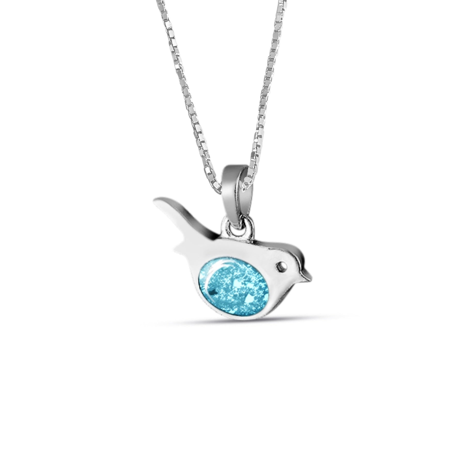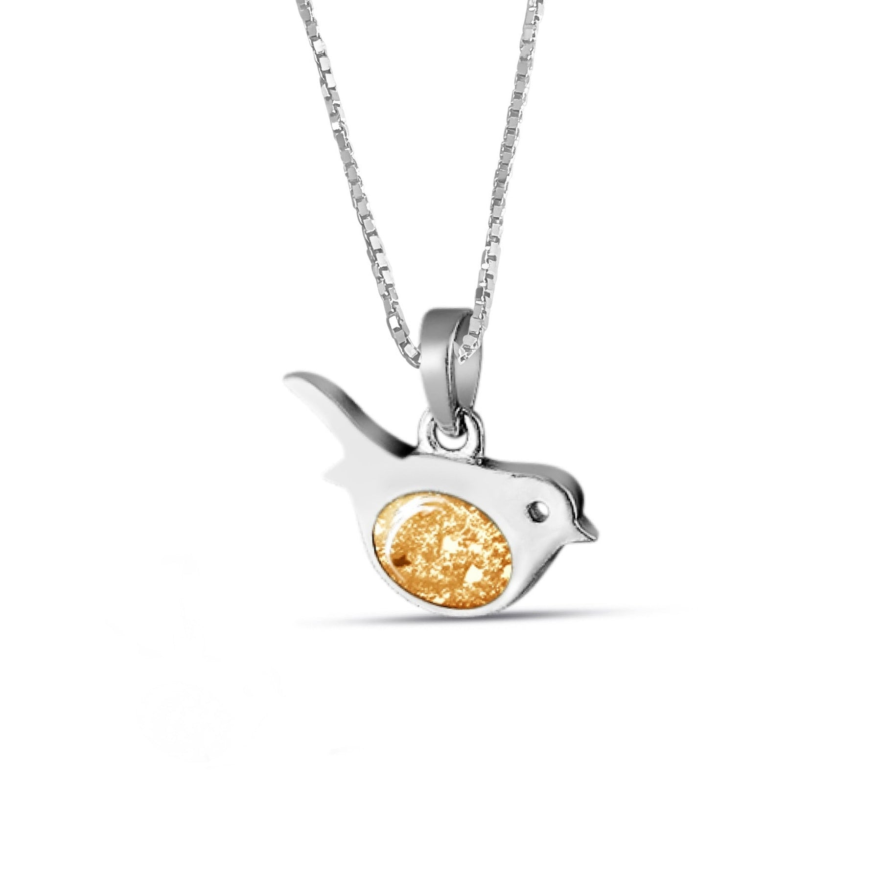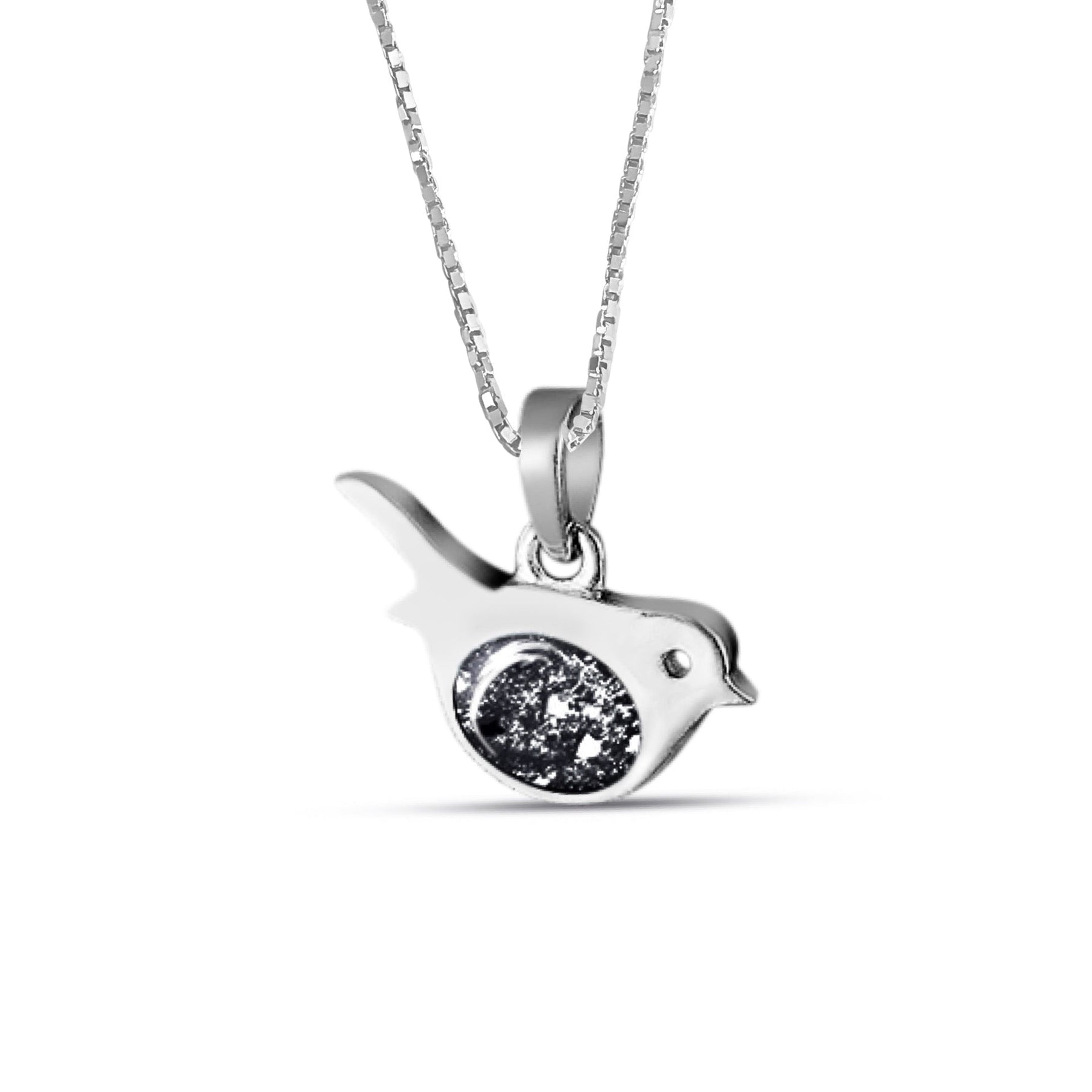 Regular price £189.00This beautiful robin memorial necklace has a feature setting in it's chest where your loved ones ashes or hair will be placed. We can also create this design using your beloved pets ashes, fur or horsehair.