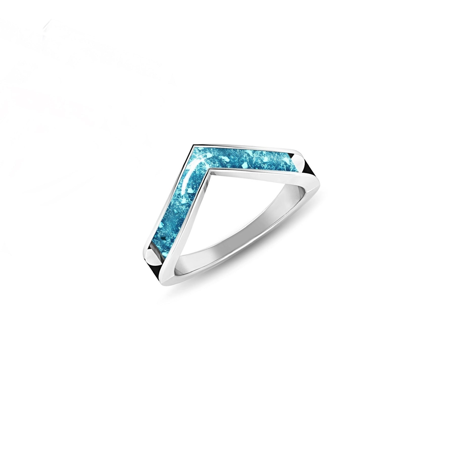 This wishbone design memorial ring is classic yet stylish and has a slender setting along the wishbone where the ashes, hair, fur or horsehair of your loved one or pet will be placed.  The setting measures approximately 12mm at it's widest point and is 1mm wide.